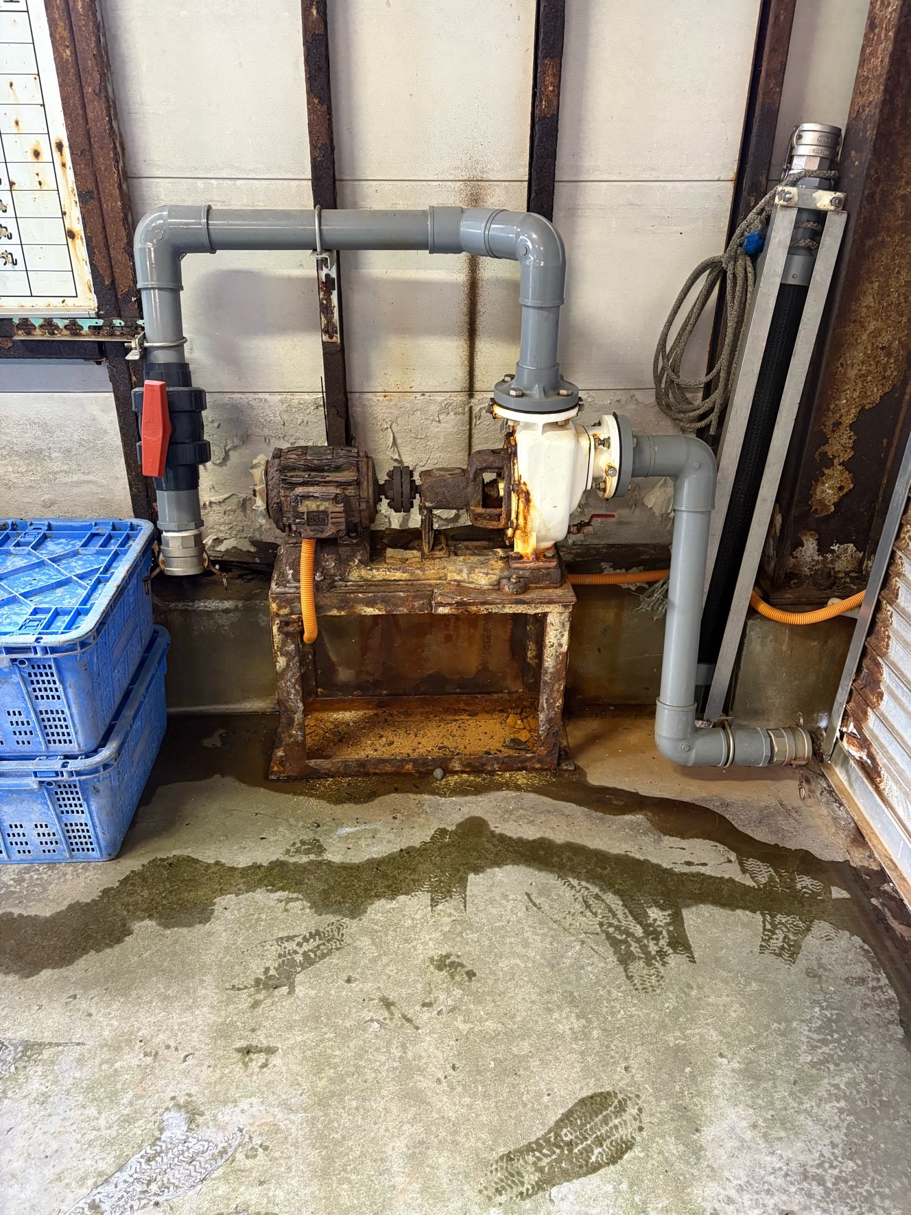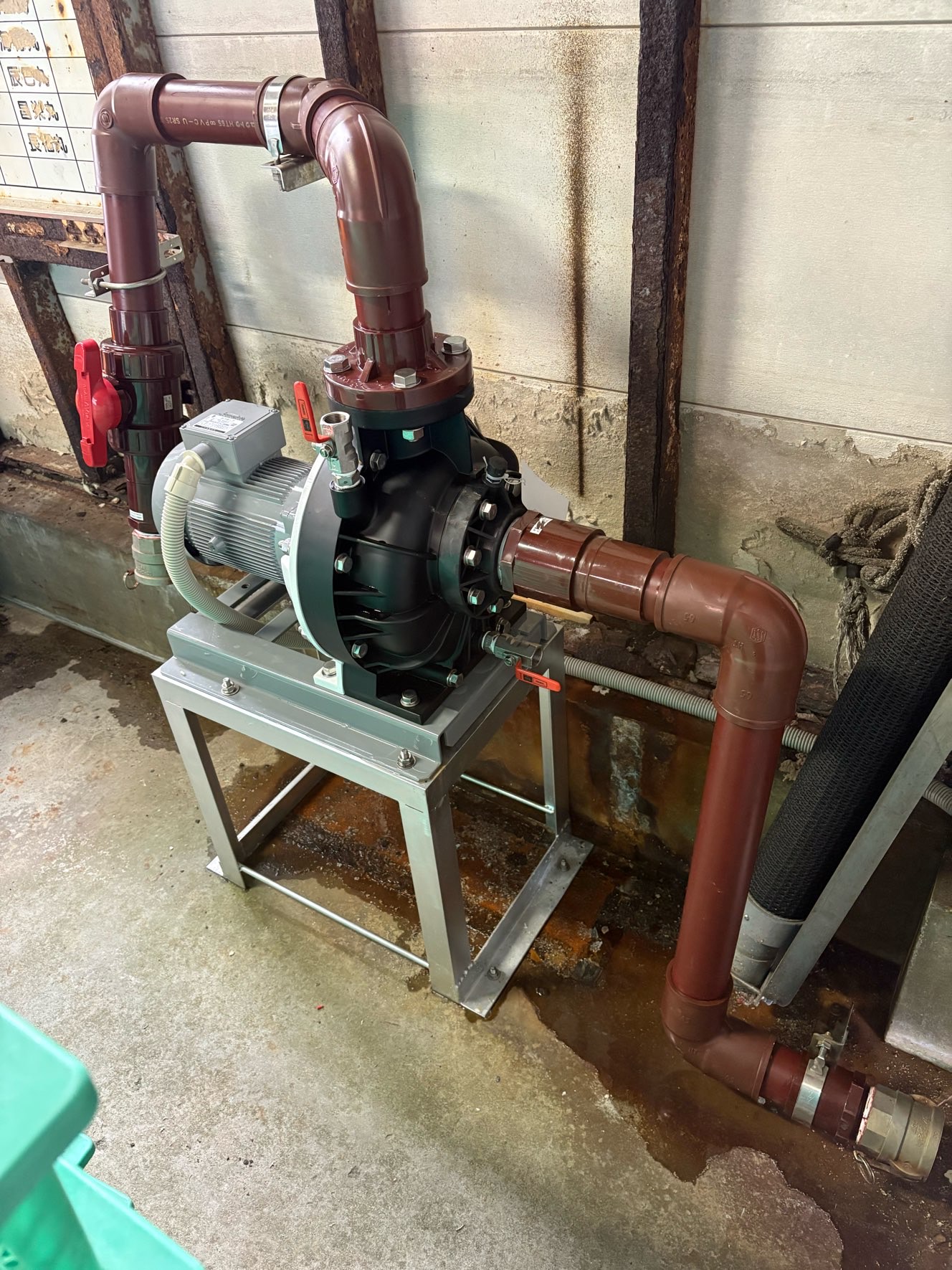 既存のポンプが運転時に異音があり、経年劣化もひどいため交換いたしました。