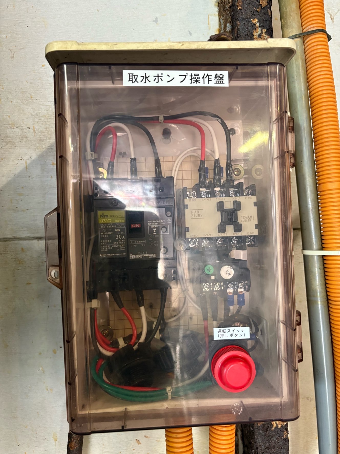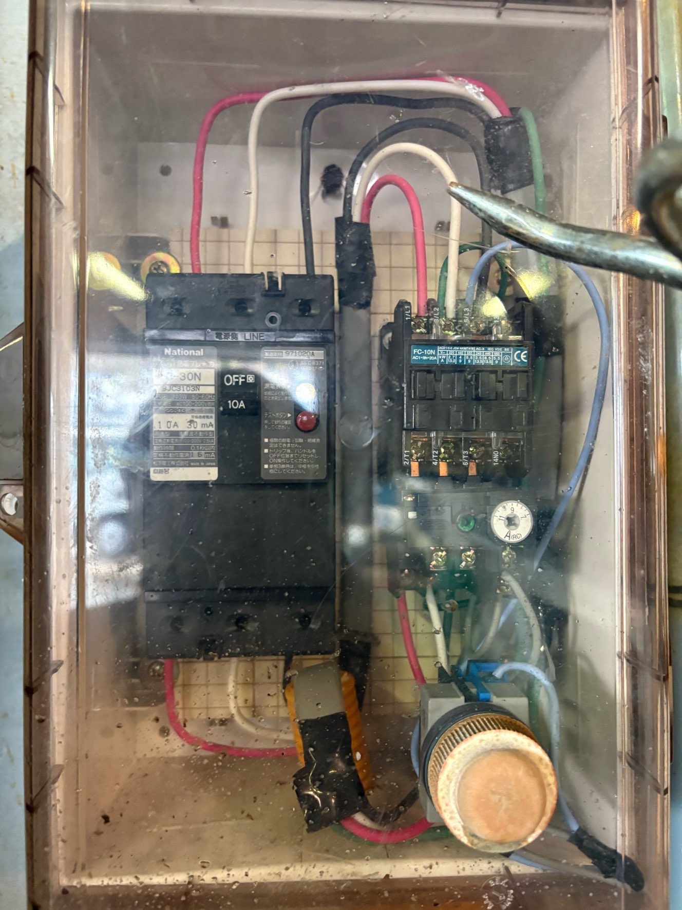 プラボックは既存を使用しましたが、ブレーカー・マグネットスイッチ・押しボタンスイッチは新品交換しました。