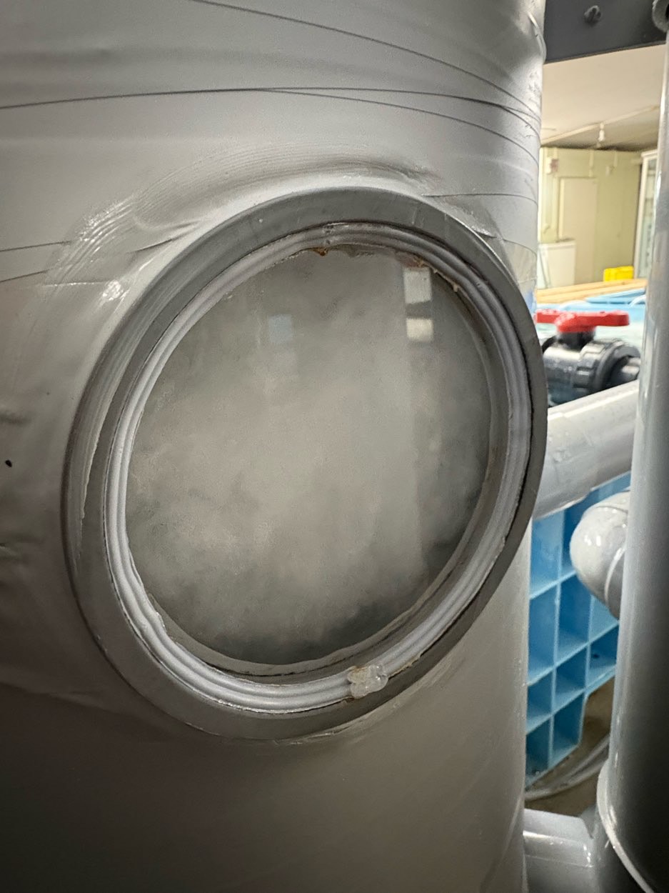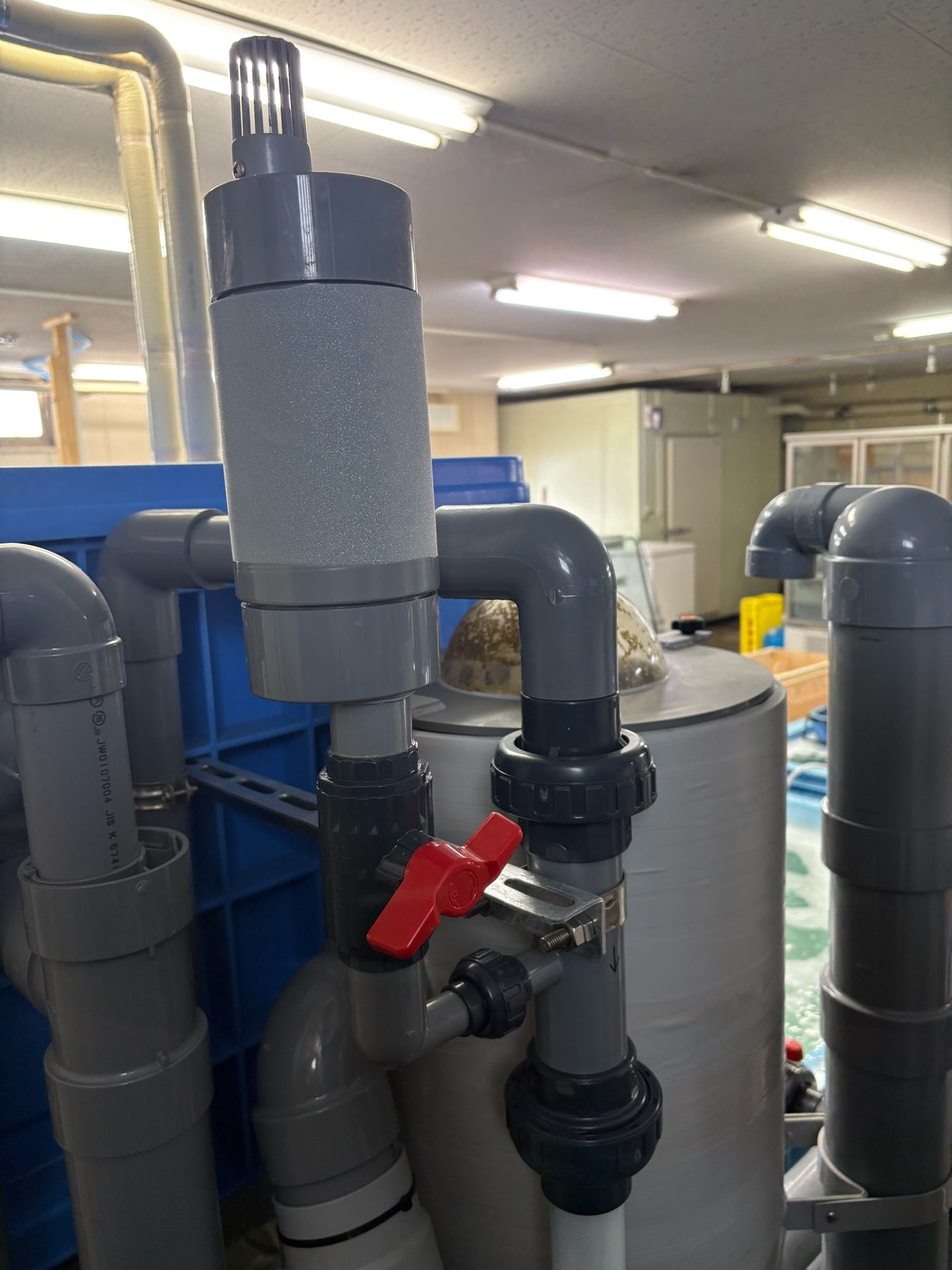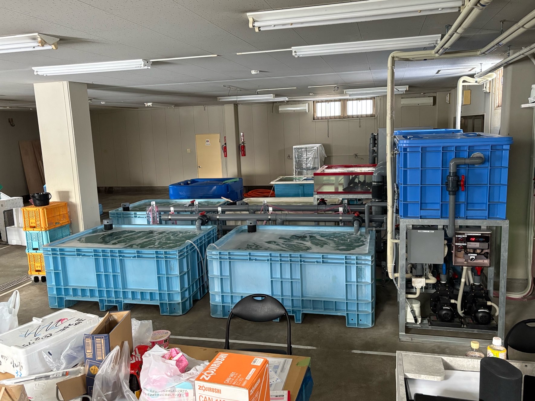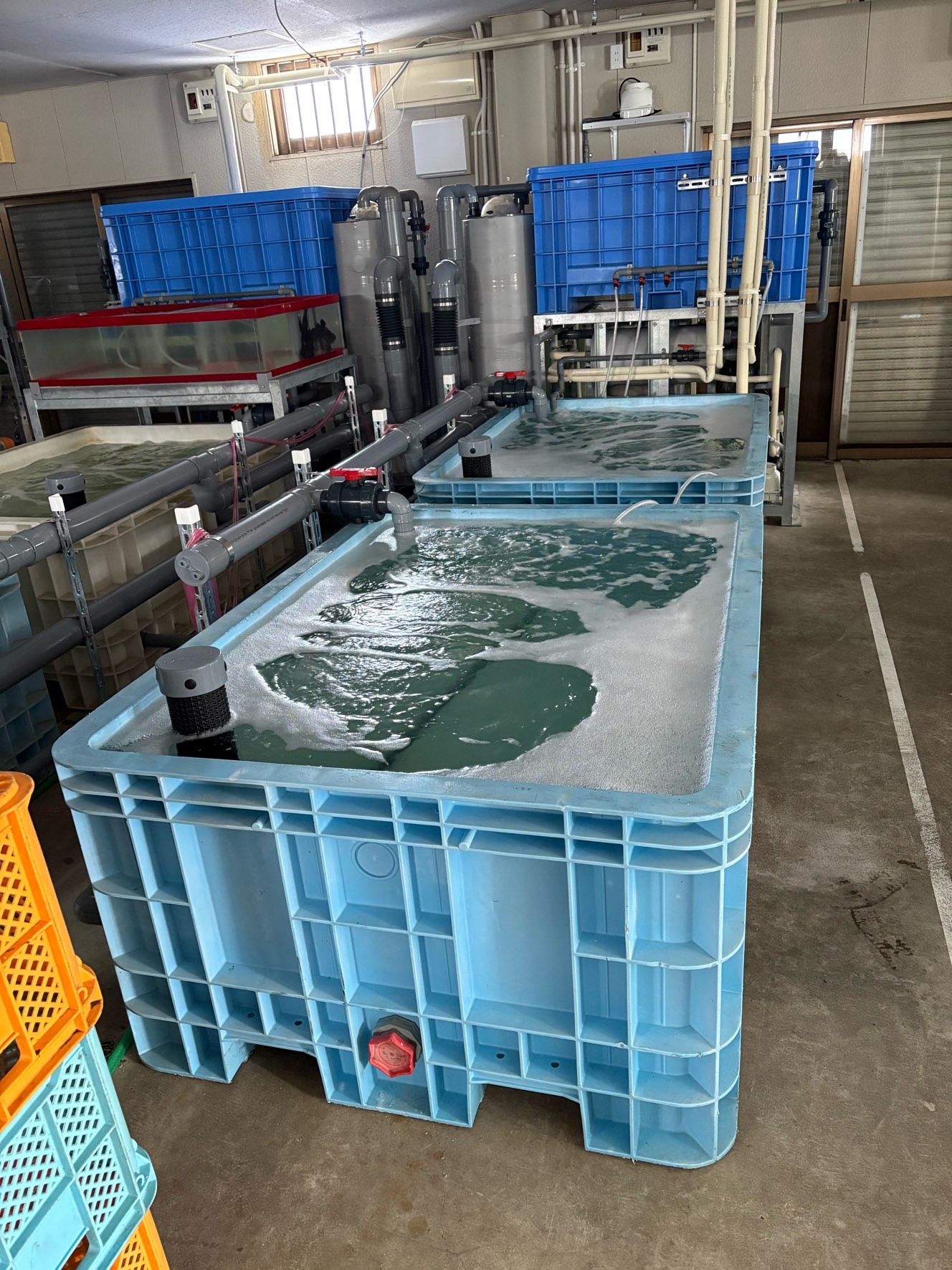 ジャンボックスはお客様からの支給で、冷却機・循環ポンプ・エアーポンプ・泡沫分離槽・操作盤など弊社の中古品を使いながら、+10℃仕様と+5℃仕様の2セット製作いたしました。